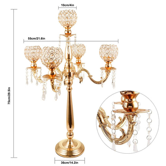Gold Crystal Candle Holders for Wedding Party Home Decoration Centerpieces, Halloween Christmas Room Decor 5 Arms Candlestick